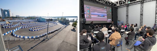 CITY CIRCUIT TOKYO BAY(シティサーキット東京ベイ)「パレットタウン」跡地の一部に位置し、東京23区内では唯一のモータースポーツ・サーキットコースとなります。専用に開発したEVレーシングカートとシミュレーターを使用することで、屋内外のコースで本格的な都市型レーシング体験とVR などによるe-Motorsports体験を提供します。