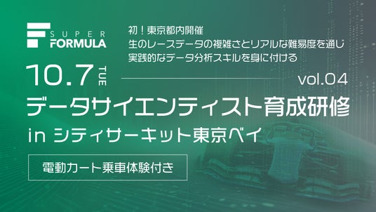 世界最高峰のF1に次ぐ速さを誇り、国内最高峰で最速のフォーミュラカーレースである全日本スーパーフォーミュラ選手権(SUPER FORMULA)を運営する株式会社日本レースプロモーション(JRP)は、幅広い業種業界におけるデータ活用の分野で活躍するデータサイエンティストの育成を目的に、世界的にも珍しいリアルなモータースポーツデータを活用したデータ分析の入門講座を開催しています。