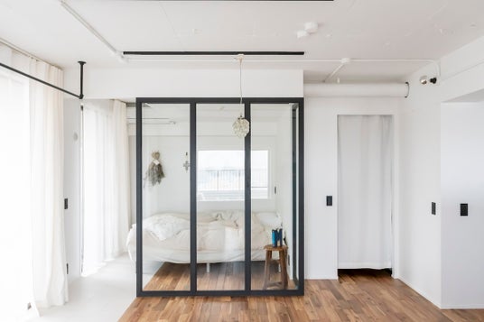 ガラス張りでホテルライクな寝室(出典:ゼロリノベ)