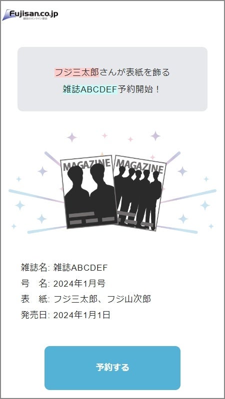 富士山マガジンサービスでは、昨今様々な場面で広まっている「推し活」に着目し、雑誌領域での情報収集をサポートするサービスを企画しています。日々多くの雑誌が発売される中で、ほしい表紙の雑誌情報を追いかけるのは容易ではありません。早めに予約または購入しないと買い逃してしまう場合もあります。