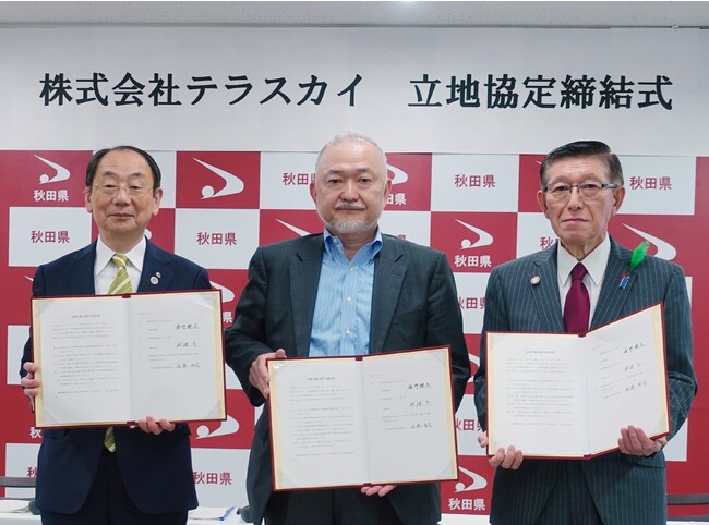 株式会社テラスカイ(本社:東京都中央区、代表取締役CEO 社長執行役員:佐藤 秀哉、以下テラスカイ)は、全国各地で優秀なIT人材を採用、育成を行っていくという成長戦略のもと、このたび秋田県秋田市に、テラスカイとしては第2拠点目となるサテライトオフィス新設に向け、2023年5月16日(火)に、秋田県及び秋田市と立地協定を締結いたしました。