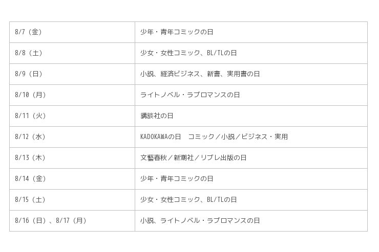 対象日 対象ジャンル・出版社