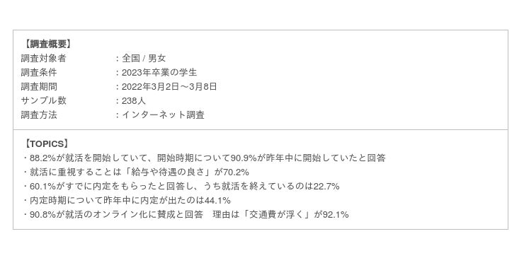 ※詳細は別紙の「23年卒 就活実態調査 報告書」をご参照ください(※2)