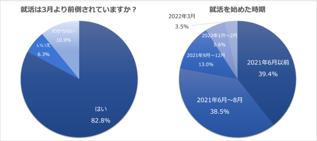 また、3月の情報解禁よりも前倒しされていると感じるかについて聞くと、82.8%が「そう感じる」と回答し、「感じない」は6.3%という回答結果になりました。