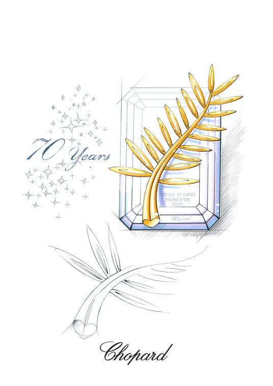 “第七芸術:映画”における最高の栄誉と称されるパルム・ドールが、今年で誕生70周年を迎えます。その名を口にするだけで、数えきれないほどの銀幕の思い出が甦ると同時に、1998年からオフィシャルパートナーを務めるカンヌ国際映画祭に対するショパールの心からのオマージュを思い起こすことができます。メゾンはパルム・ドールを始めとし、同映画祭で授与されるすべてのトロフィーを製作するという名誉ある役割を担っています。ジュネーブのハイジュエリーアトリエでは、パルム・ドールの製作に70時間以上にもおよぶ作業と高度なクラフツマンシップが注がれています。第78回カンヌ国際映画祭は、2025年5月13日から24日まで開催され、審査委員長は昨年に引き続き、今年も女性がその任に就き、ジュリエット・ビノシュがこの大役を務めます。