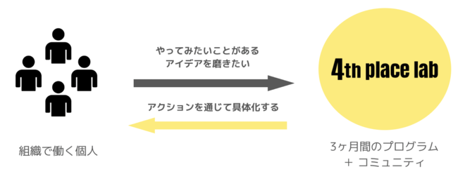 そして今年4月より、「4th place lab」は新たに企業との連携をスタートします。参加者は毎週オンラインで、アイデア出し・実践・相互メンタリングを繰り返し、3ヶ月間で個人のプロジェクトの立ち上げを目指します。