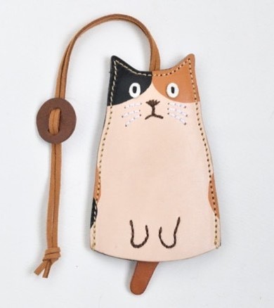 猫をモチーフにした雑貨を制作。作家自身の猫への愛情が伝わってくる、キョトンとした愛らしい表情が魅力。革小物を中心に、ポーチ類やキーケース、小銭入れ、カードケースなどを幅広く手掛ける。