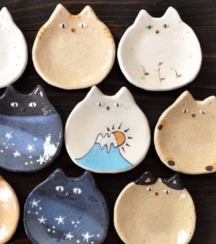 福岡の陶器アーティスト。大切な人や家族との間に笑顔が増える、いつもの食卓が楽しくなるような器を手掛ける。猫やパン、おにぎりやカエルなど身近なものをモチーフに、一つひとつ手作りで制作。