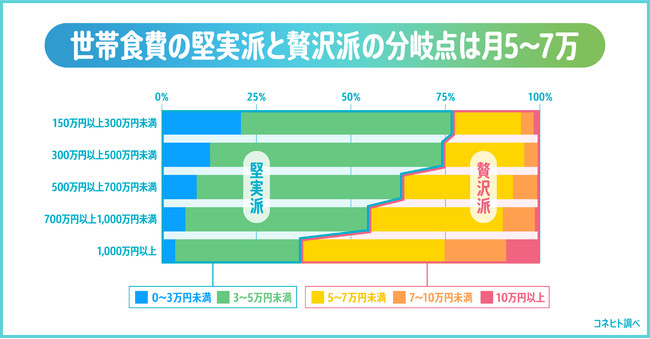 ■世帯食費の堅実派と贅沢派の分岐点は月5~7万