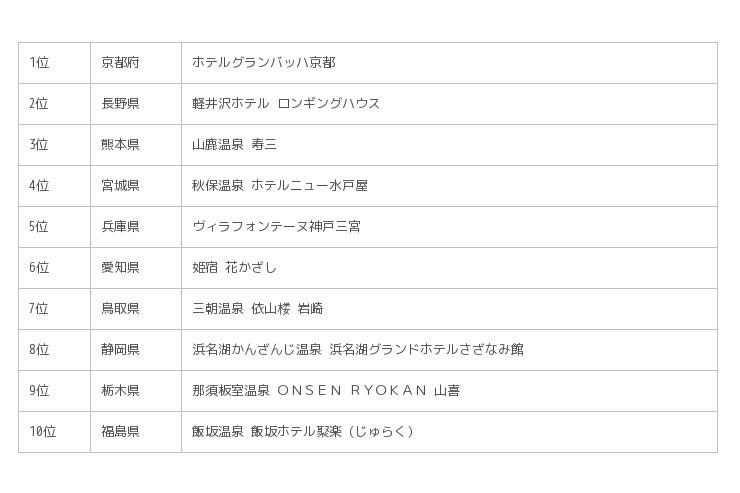 周辺観光地へのアクセスに便利で、宿内で癒し・美容体験ができるホテルが上位に