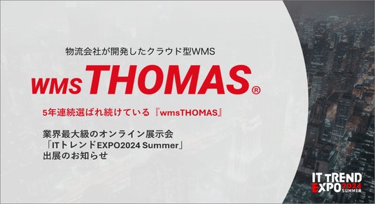 toC、toBの物流サービス事業をメインとしてサービスを展開する株式会社関通(本社:兵庫県尼崎市、代表取締役社長 達城 久裕)が提供するwmsクラウドトーマスは、株式会社イノベーション(東証グロース 証券コード3970)のグループ会社である、株式会社Innovation & Co(本社:東京都渋谷区、代表取締役社長:齊藤和馬、以下「Innovation & Co」)が主催する業界最大級のオンライン展示会「ITトレンドEXPO2024 Summer」に出展します。
