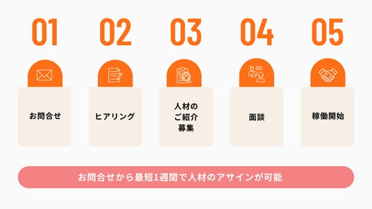 お問い合わせをいただいてから最短1週間でプロ人材をアサインできます。専任のコンサルタントが丁寧にご説明いたしますので、お気軽にお問い合わせください。