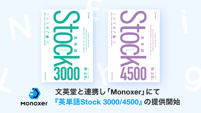 モノグサ株式会社(東京都千代田区 代表取締役:竹内 孝太朗、畔柳 圭佑)は記憶定着のための学習プラットフォーム「Monoxer(モノグサ)」が、株式会社文英堂(東京都新宿区 代表取締役社長:益井 英郎、以下「文英堂」)よりライセンスを受け、Monoxer上で英単語教材『英単語Stock(ストック)』を導入教室に向けて2023年度にリリースすることをお知らせいたします。