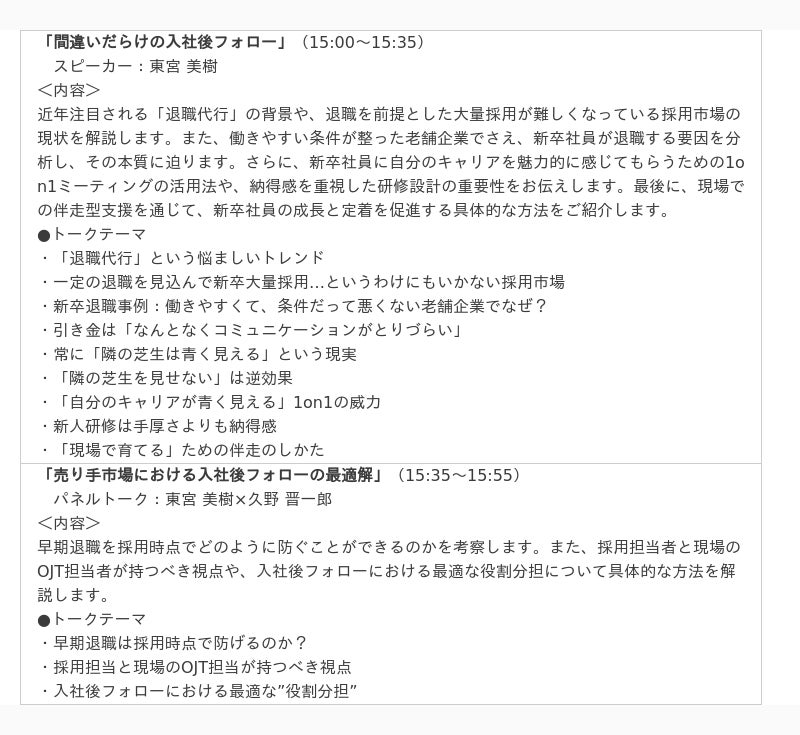 ●ウェビナー名:「間違いだらけの入社後フォロー」