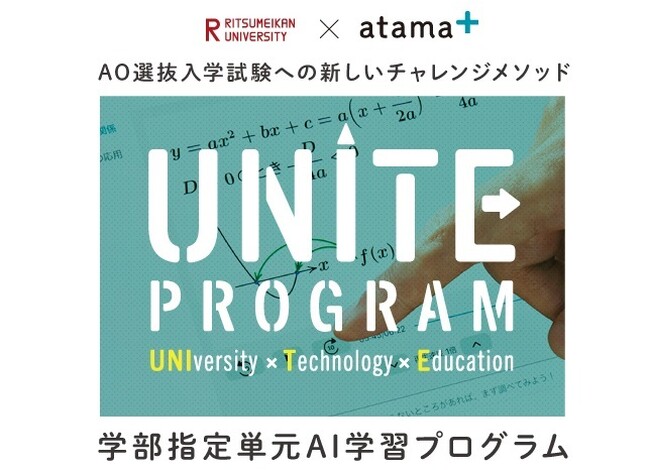 立命館大学(京都府京都市、学長 仲谷 善雄)は、atama plus株式会社(東京都港区、代表取締役CEO 稲田 大輔)と協働で開発した、「学部指定単元AI学習プログラム(通称:UNITE Program、以下プログラム)」の修了を出願要件に取り入れた2024年度総合型選抜(AO選抜入学試験)を、昨年度より対象を拡大して実施いたします。プログラムの出願開始は5月9日、AO選抜の出願開始は9月以降となります。2年目となる今年度は、昨年と同様経済学部・スポーツ健康科学部・食マネジメント学部にて「数学」、新たに薬学部にて「化学」から単元を指定します。