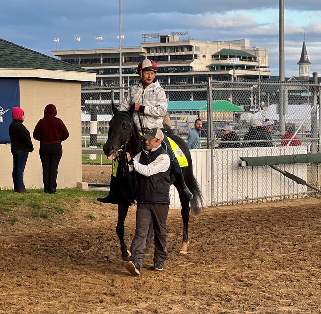 「チャーチルダウンズ競馬場に到着してから調子もよく、サンタアニタパーク競馬場にいた時と特に変わったところはありません。マンダリンヒーローがいる厩舎にはケンタッキーダービーに出走予定のJRA所属馬2頭が一緒におり、最初は同じ厩舎に他の馬がいることでそわそわしていましたが、今では逆にすっかり落ち着くようになりました。調教も予定通り進んでいます。」