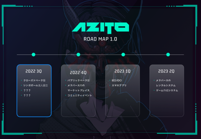 今後、当社は下記のロードマップに従って運営していき、2022年秋頃に「AZITO」による新たなメタバースサービスのリリースではtoB / toCへ一般公開していきます。