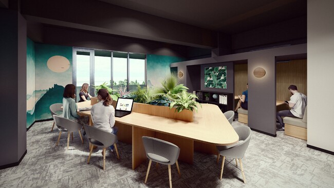 当施設では、オフィス内に自然を感じることができる要素を取り入れることで、生産性の向上やストレスの軽減などの効果が期待できるとされている「バイオフィリックデザイン」を初導入。大宮という職住近接な働き方がかなう立地ならではの「自然を感じながら働くことのできるシェアオフィス」を提供します。