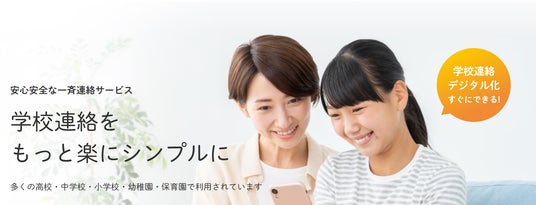 学校連絡をメールやスマホアプリといった複数の方法で、「安心」「便利」「楽」に受け取ることができるサービスです。