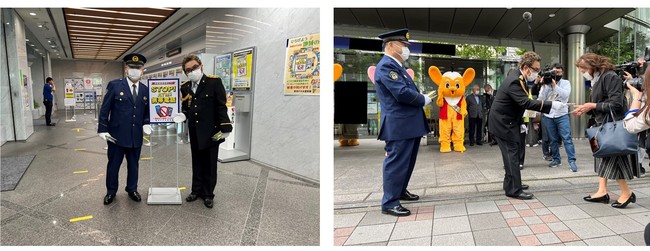 この度、コロッケ特別防犯支援官が、東京都内の金融機関で開催された特殊詐欺根絶イベントに登場しました。本イベントは、ATMでの携帯電話の通話はしない、させないことを呼びかける「STOP!ATMでの携帯電話」運動を推進し、還付金詐欺をはじめとする特殊詐欺の根絶を目的として開催。イベント内でコロッケ支援官は、新たに制作された立体版「STOP!ATMでの携帯電話」ポスターのお披露目・掲示と、ATMや銀行前での地域住民への啓発チラシの配布を行いました。
