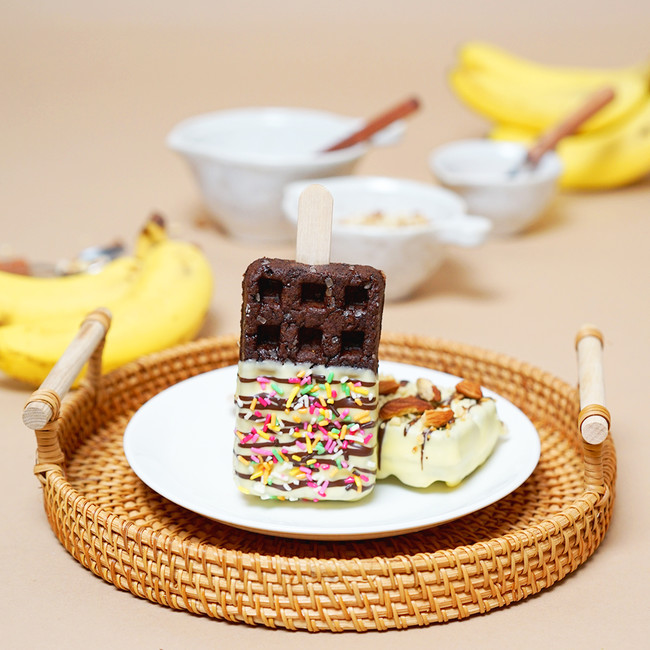 完熟バナナ風味のチョコをディップし、本物のチョコバナナのような「パリッ」とした食感に。トッピングのナッツにより、アクセントのある1本です。