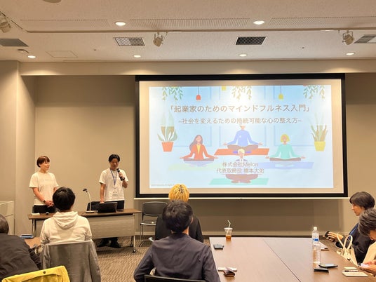 今回のイベントでMELONは、本プログラム前に開催される「朝一体験」の一つとして「起業家のためのマインドフルネス入門」を開催し、たくさんの起業家の皆さまにご参加いただきました。