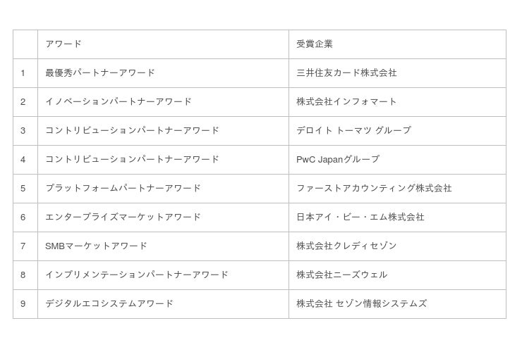 各賞の受賞パートナー企業は以下の通りです。