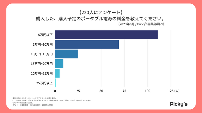 10万円以下のポータブル電源を購入、購入予定の方が約80%ということがわかりました。
