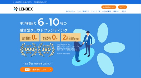 これから投資を始めようと考えている方にご検討いただきたいのが、融資型クラウドファンディングのレンデックス(https://lendex.jp/)です