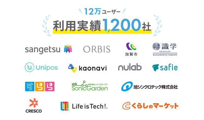これまでに、8,000人以上の従業員を抱えるプライム市場上場企業、グロース市場にIPOを果たしたテクノロジー企業、ベンチャーキャピタルから数十億円の資金調達をしている未上場企業、創業から間もない数名~10数名の規模の企業まで、累計1,200社導入および利用者12万ユーザー突破の実績があります。