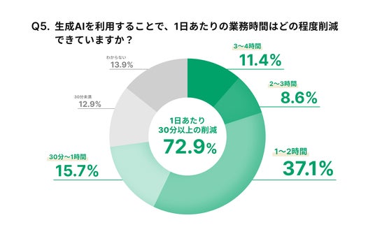 生成AIの活用により 72.9% の従業員が「1日30分以上」の時間短縮を報告し、全社の業務削減効果は16.5%に達しました。
