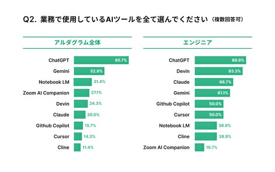 「ChatGPT」利用率 95%、Gemini併用は約半数