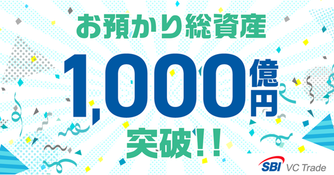 SBI VCトレード株式会社(本社:東京都港区、代表取締役社長:近藤 智彦、以下「当社」)は、2024年2月13日時点でお客さまからのお預かり総資産が1,000億円を突破したことをお知らせします。