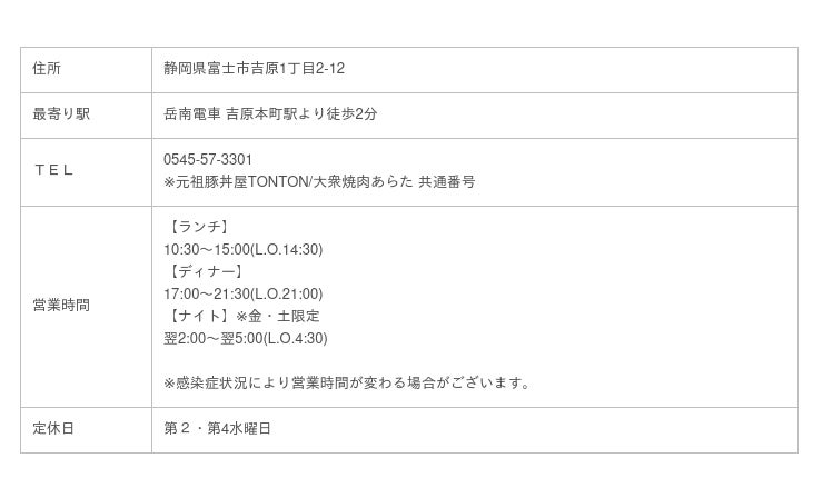元祖豚丼屋TONTON/大衆焼肉あらた 富士吉原店 期間限定キャンペーンを実施いたします