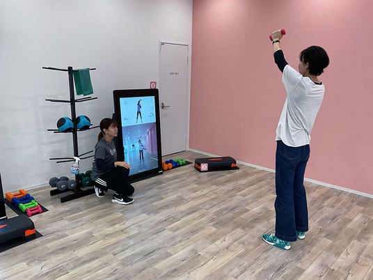 マシンのモニター画面上部に映るAIトレーナーの動きにあわせて動くヴァーチャルのパーソナルトレーニング