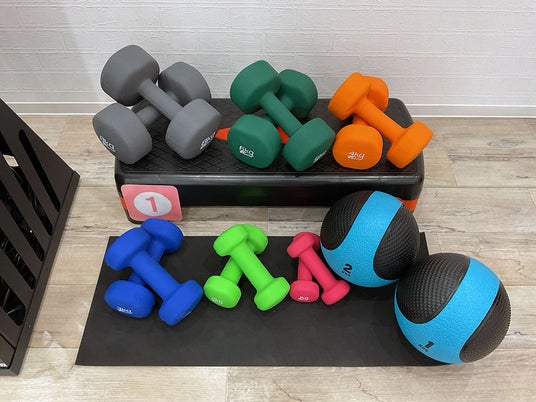 ダンベル・ボール・バンド等さまざまなトレーニングアイテムを使ったマシンに触れないパーソナルトレーニング