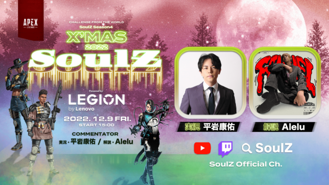 eスポーツと音楽の祭典「SoulZ」。シーズン4となる今大会は、12月9日(金)15時よりYouTube、TwitchのSoulZ公式チャンネルよりご覧いただけます。