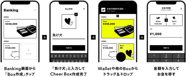 みんなの銀行では、みんなの銀行アプリを通じて提供する目的別の貯蓄機能「Box」を活用することで、特定のキーワードを含む名前を付けて作成されたBoxの預金残高に応じて、応援したい気持ちを”つなぐ”「みんなのCheer Box」の取組みを展開しています。本件では、その枠組みを活用した『「今日も明日も負け犬。」Cheer Box』を提供することで、上映イベント以降も起立性調節障害に苦しむ方々に寄り添う活動を応援します。