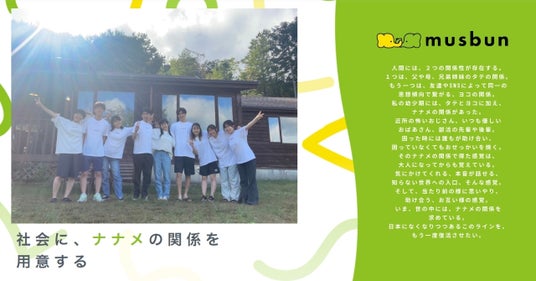 「タテの関係」である家族、「ヨコの関係」である友達に加え、地域住民同士が助け合う「ナナメの関係」を増やすことをビジョンに掲げ、チャレンジを続けています。