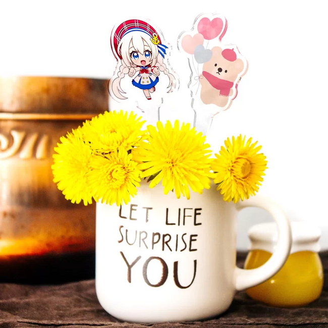 アクリルピックは、誕生日や結婚式などの特別なイベント用のケーキピックや、お部屋やお庭・花壇用のガーデンピックにもなるオリジナルピックです。