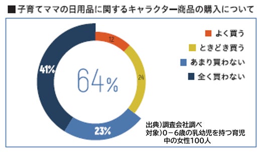 キッズ製品に多く見られるキャラクターを使用したデザインに対し、過半数のママが、あまり/全く使わないと回答