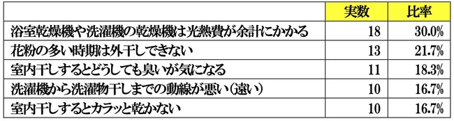 ・洗濯物は洗濯機の乾燥機で乾かすことが多い方の悩みBEST5 N=60