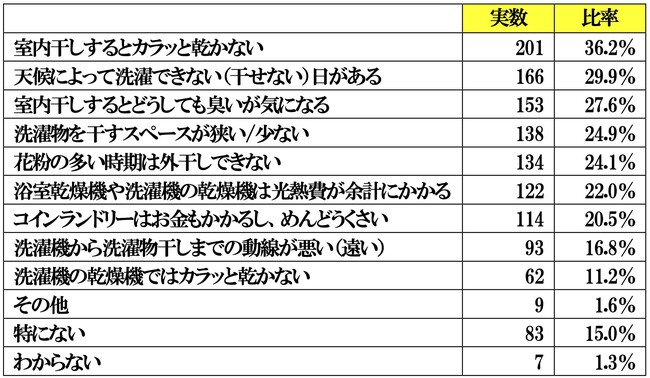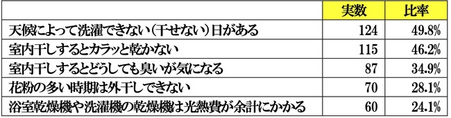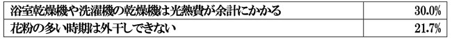 ~天日干し=天候や花粉に左右される、室内干し=干すスペースが狭いなどの悩みも~