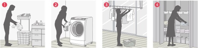 脱ぐ→2.洗う→3.干す→4.しまう」の一連の流れがスムーズに行える洗濯動線です。