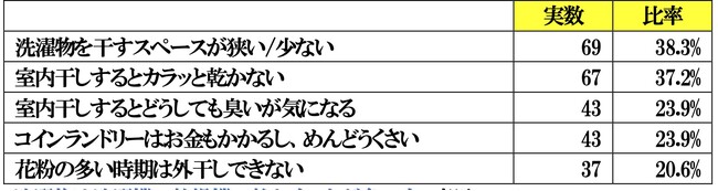 ・洗濯物は室内に干すことが多い方の悩みBEST5 N=180