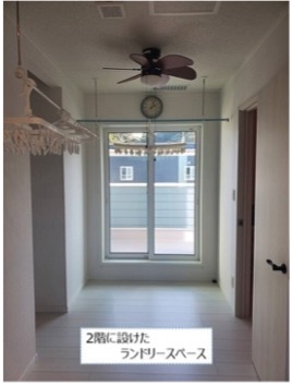 当社の公式noteでGLホームの施工事例としてご紹介した住まいでは、「全館空調システム」と室内のランドリースペースを設けています。物件には、2階の南側にバルコニーもあるのですが、外干しできない時は、この「室内ランドリースペース」に洗濯物を干しているとのことです。「全館空調システム」が入っているのと、シーリングファンを設置したことで、だいたい次の日には洗濯物は乾いているとのこと。天候に左右されず、花粉やほこりなどからも洗濯物を守ることができます。