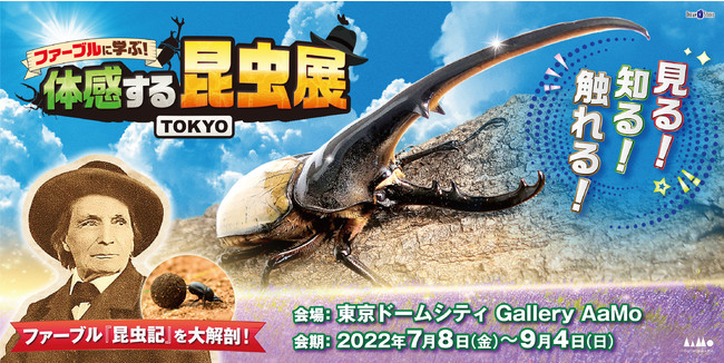 東京ドームシティ(文京区後楽1-3-61)の「Gallery AaMo(ギャラリー アーモ)」では、2022年7月8日(金)~9月4日(日)の期間、ファーブル『昆虫記』を執筆したアンリ・ファーブルが2023年に生誕200周年を迎えることを記念して、『ファーブルに学ぶ!体感する昆虫展TOKYO』を開催します。