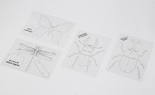 段ボールシートからパーツを取り外し、組み立てて好きな色を塗り、大迫力のオリジナルカラーの昆虫が作れます。