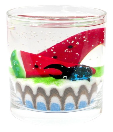 色鮮やかな砂、ガラス細工などを使って、自分だけのオリジナル昆虫キャンドルが作れます。