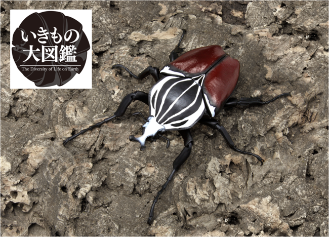 「昆虫展」会場内の、ヘラクレスオオカブトをはじめ人気の昆虫生体を展示する「昆虫の生体展示」エリアにて、生きものの体の仕組みを忠実に再現した『いきもの大図鑑シリーズ』の「かぶとむし」や「くわがた」フィギュアを展示します。昆虫生体と同じ『いきもの大図鑑』フィギュアを並べて展示することで、生体の構造をよりわかりやすく観察することができます。また、会場内では『いきもの大図鑑』のガシャポンも販売します。